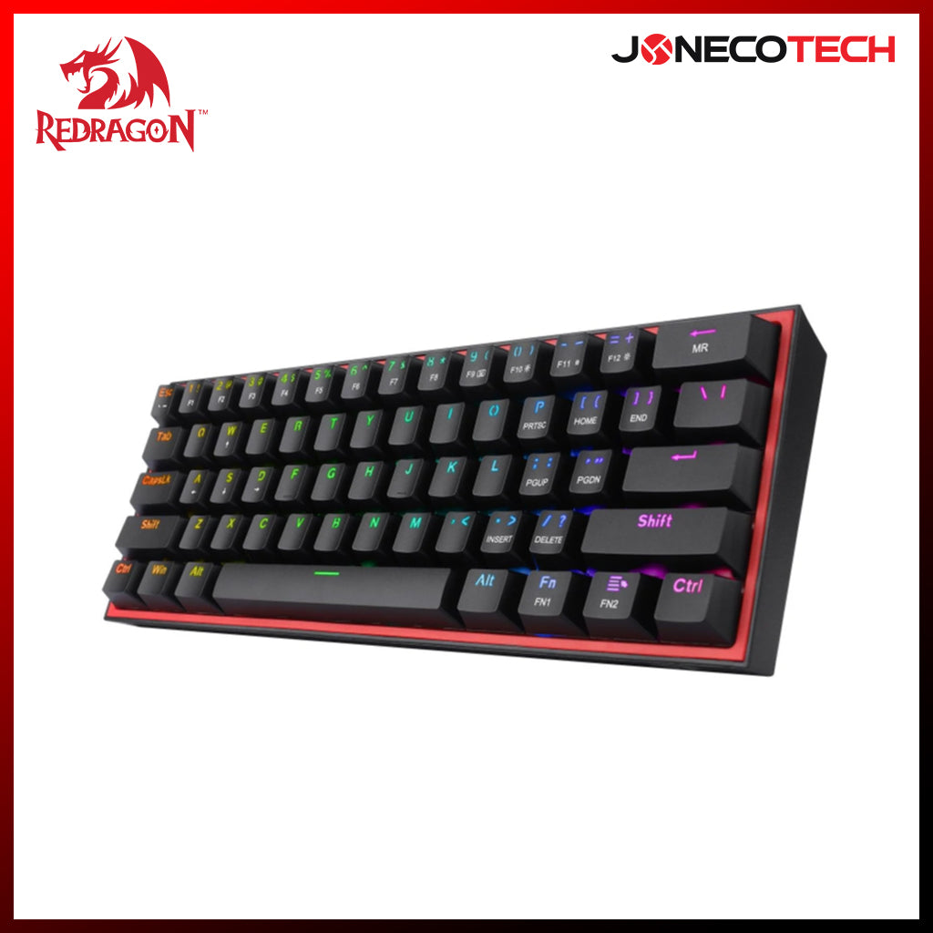 60% Wired & 2 Colors Keycaps: Redragon 60% keyboard in wired mode with fresh 2 colors mixed keycaps layout. Ultra-compact 61 keys with novel keycap color frees up precious desk space with vibrant elements.